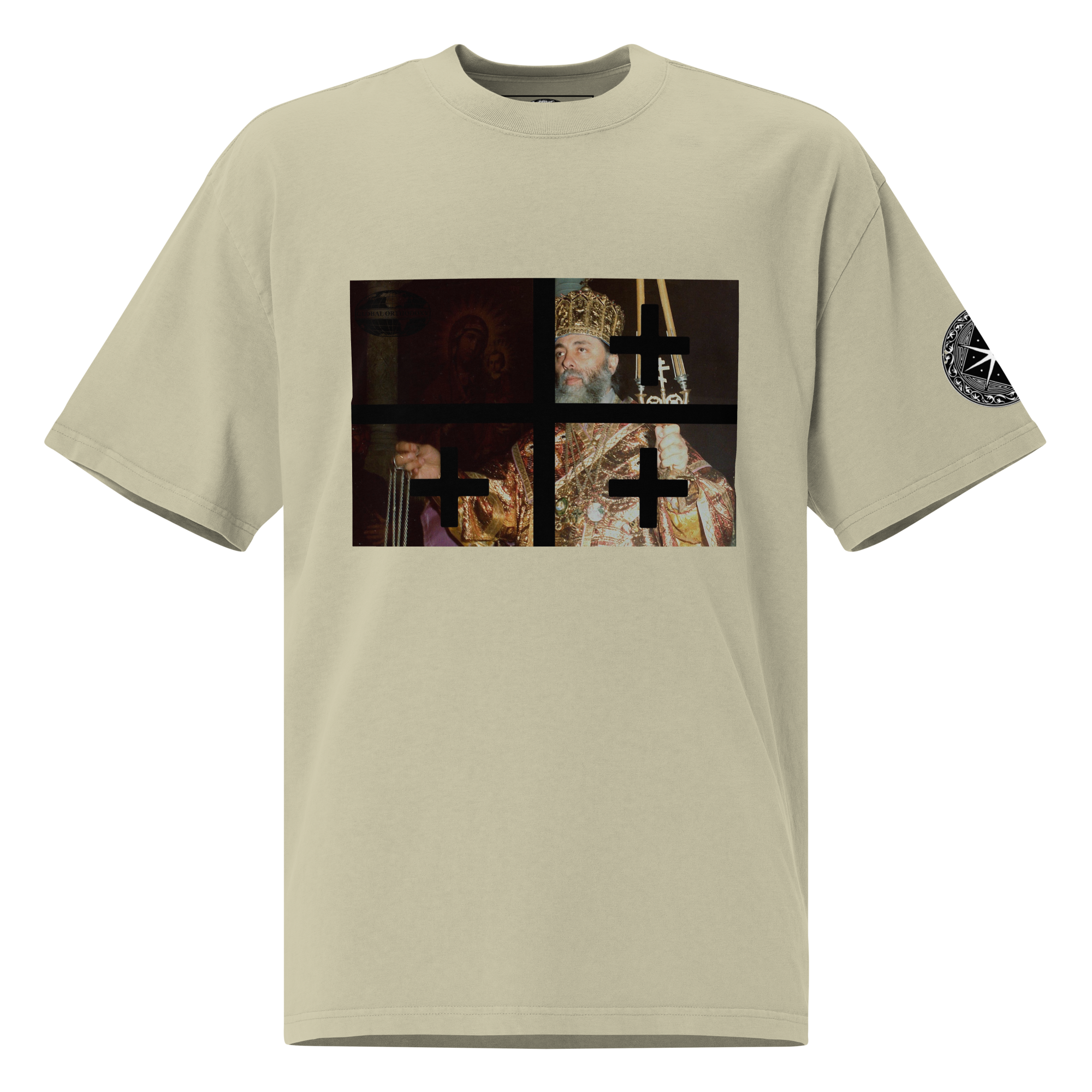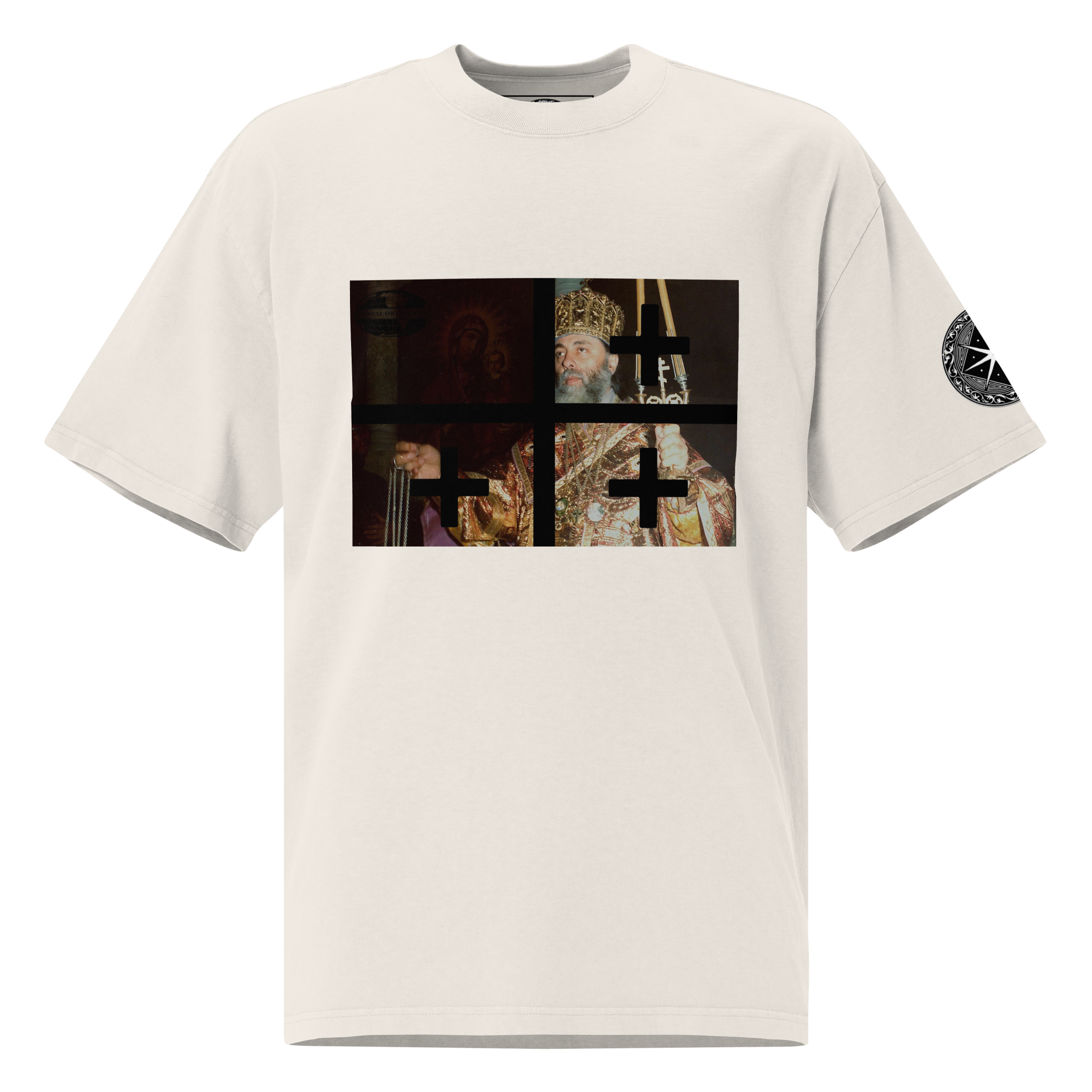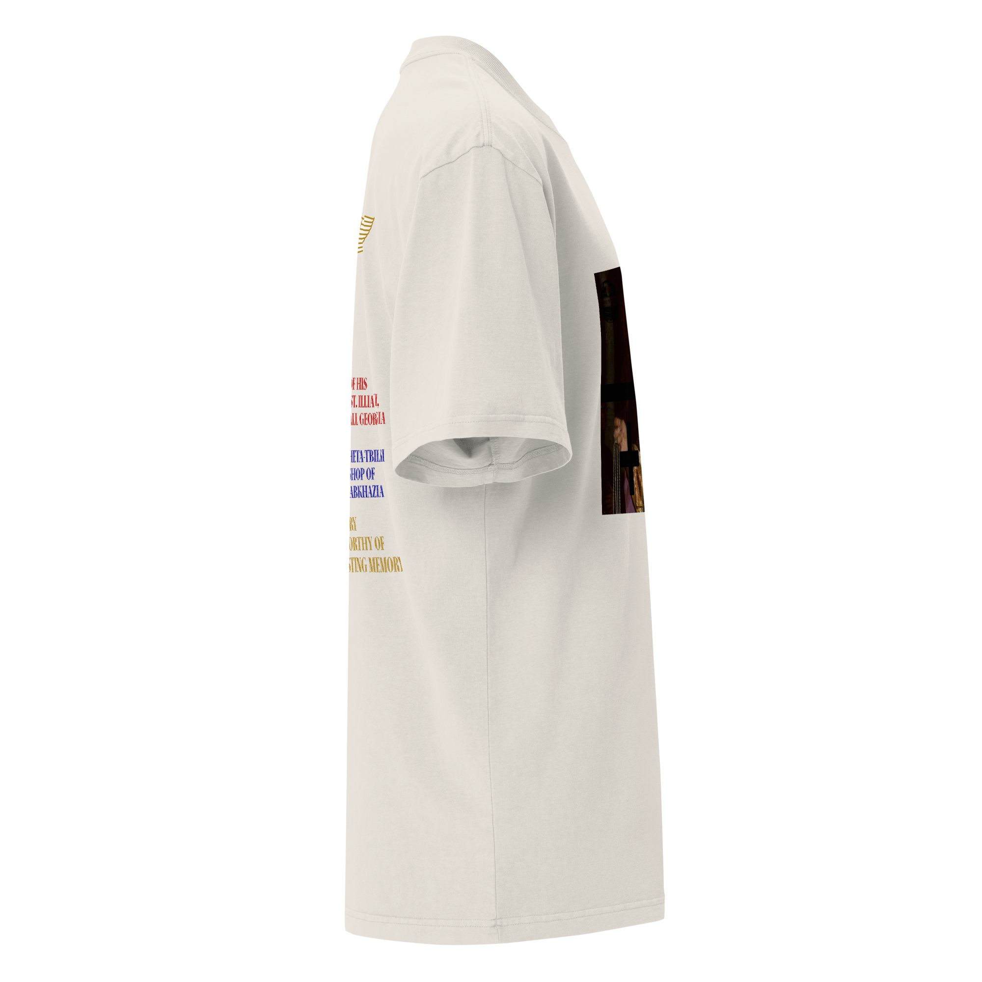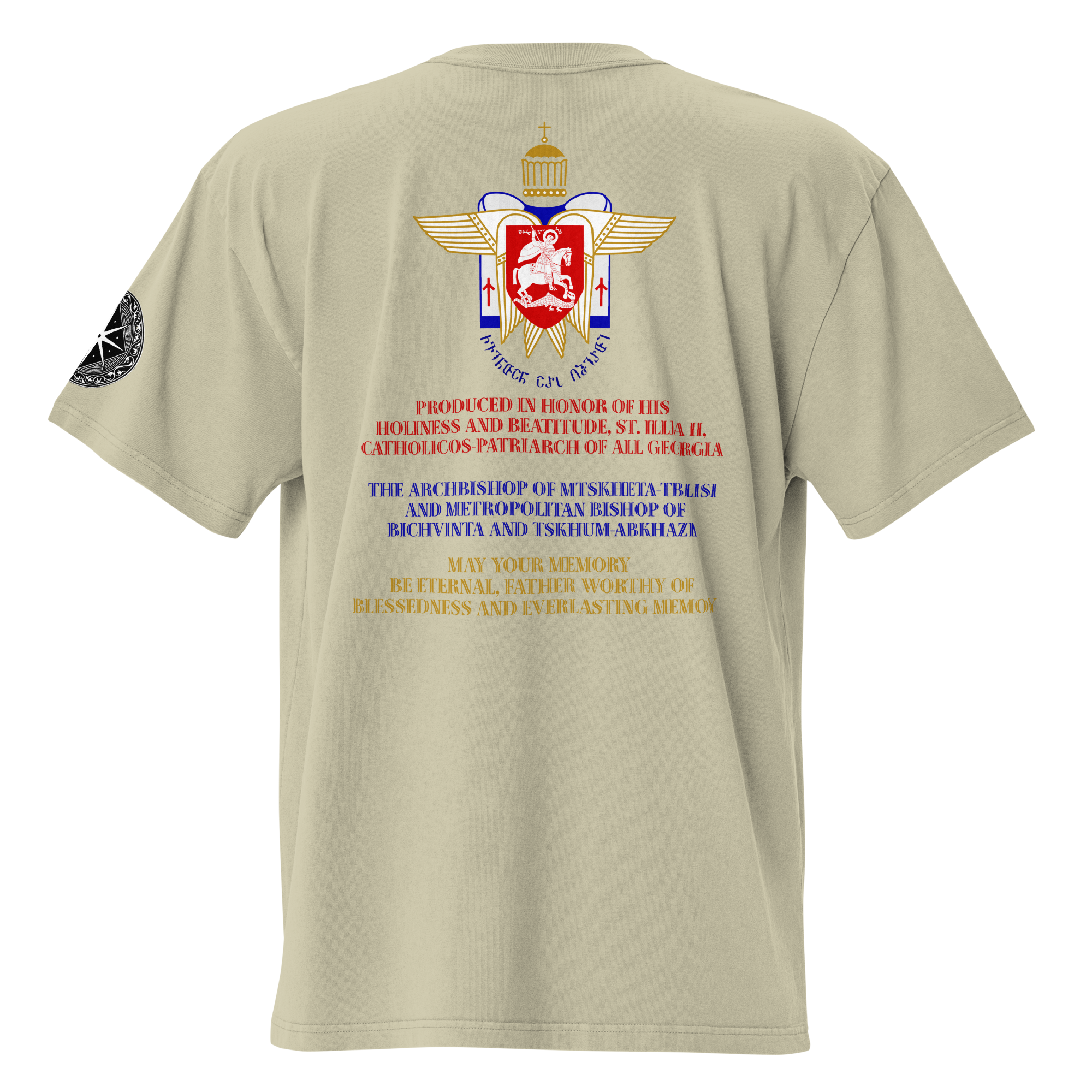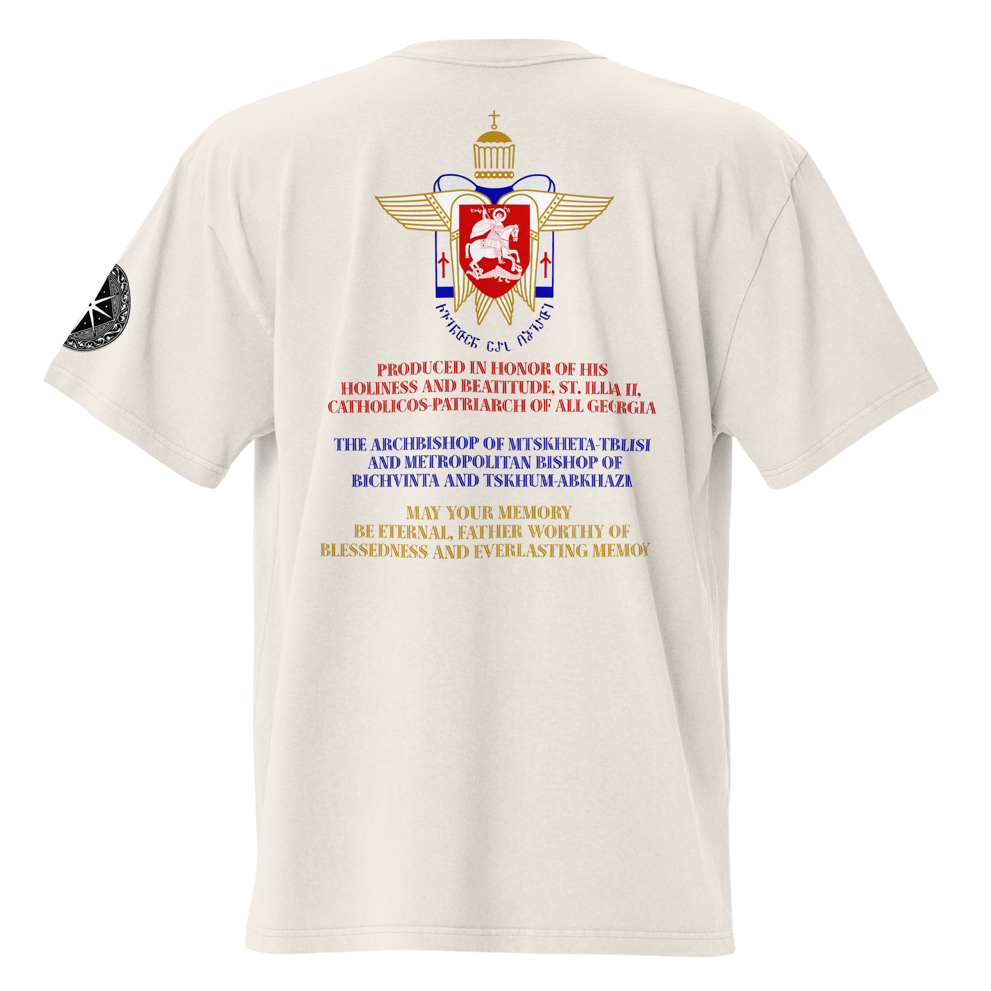 THE GEORGIAN SAINT OVERSIZED SHIRT. 100% COTTON. PRODUCED IN HONOR OF THE LATE PATRIARCH OF GEORGIA, SAINT ILLIA THE 2ND. PRODUCED AND SOLD AT COST OF PRODUCTION.